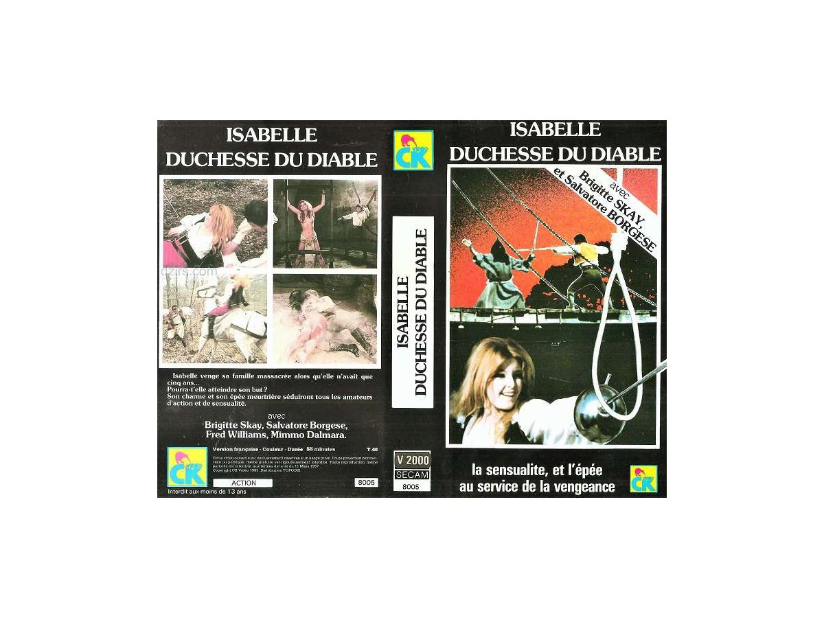 MS STILETTO 1969 (ISABELLE DUCHESSE DU DIABLE)Directed by Bruno CorbucciWith : Brigitte Skay, Elina De Witt, Gioia Desideri, Lucia Modugno, Mimmo Palmara, Fred WilliamsAudio : frenchSECAM VHSExcellent condition