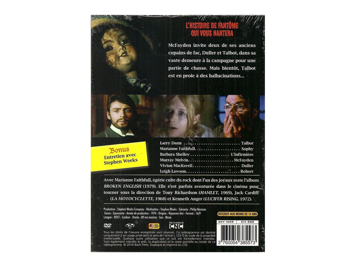 GHOST STORY - 1974Un film de Stephen WeeksAvec : Marianne Faithfull, Barbara Shelley, Larry Dann, Sally GraceEdition française - DVD PAL zone 2 Langues : anglaissous-titres : françaisEditeur : Bach FilmsNeuf sous emballage